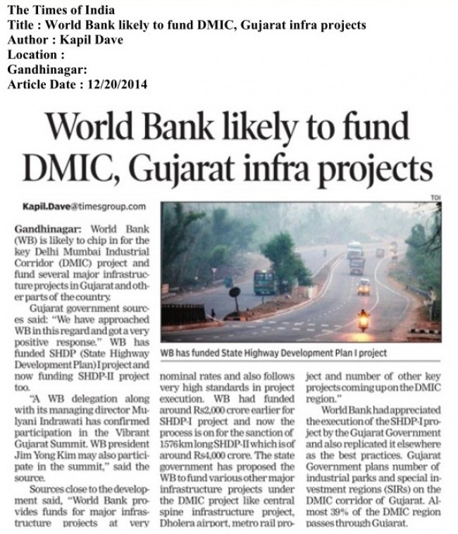 World Bank Likely To Fund DMIC, Gujarat Infra Projects