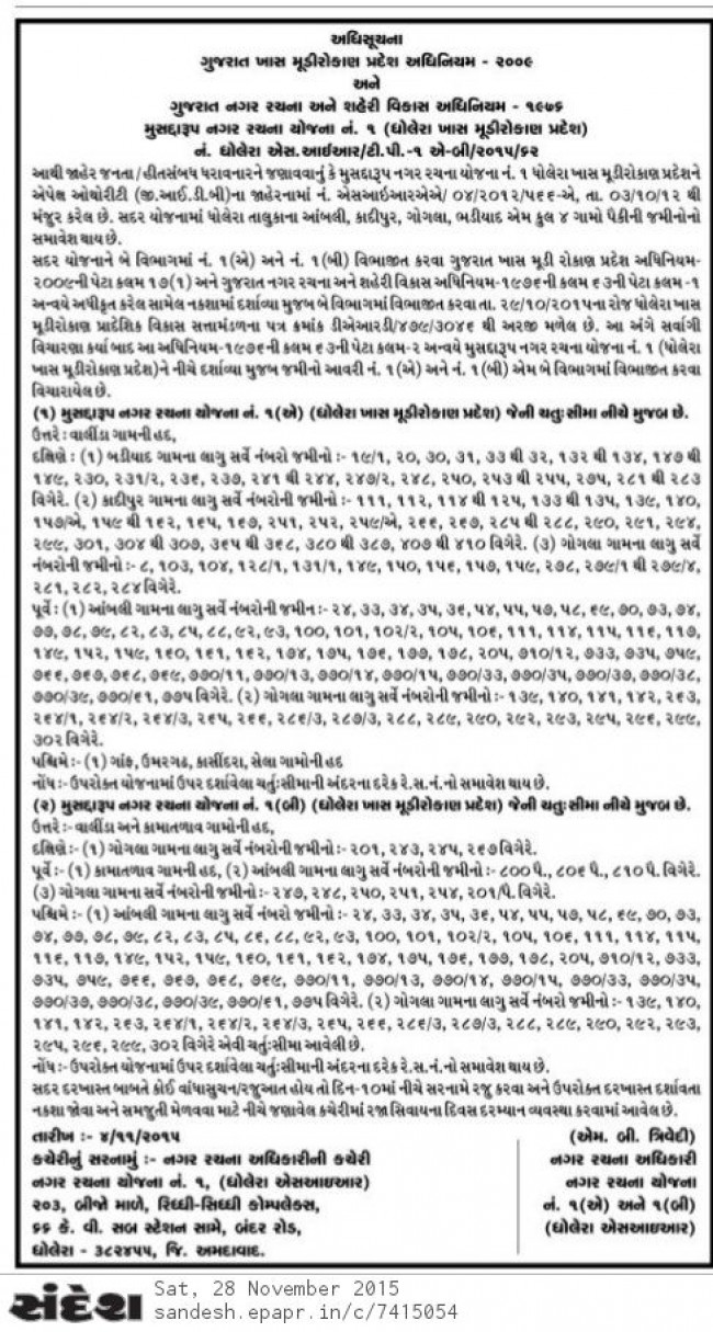 Dholera SIR Tp-1 & TP-2 Notification