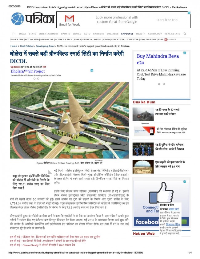 DICDL To Construct India’s Biggest Greenfield Smart City In Dholera
